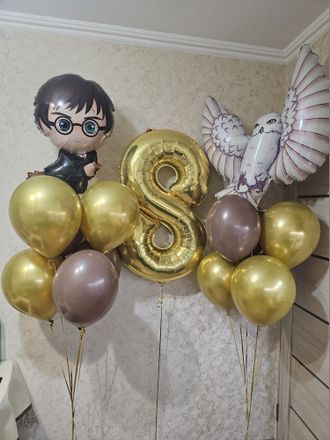 фонтан с гарри поттером + 6 шаров ( 3 хром, 3 без рисунка)
